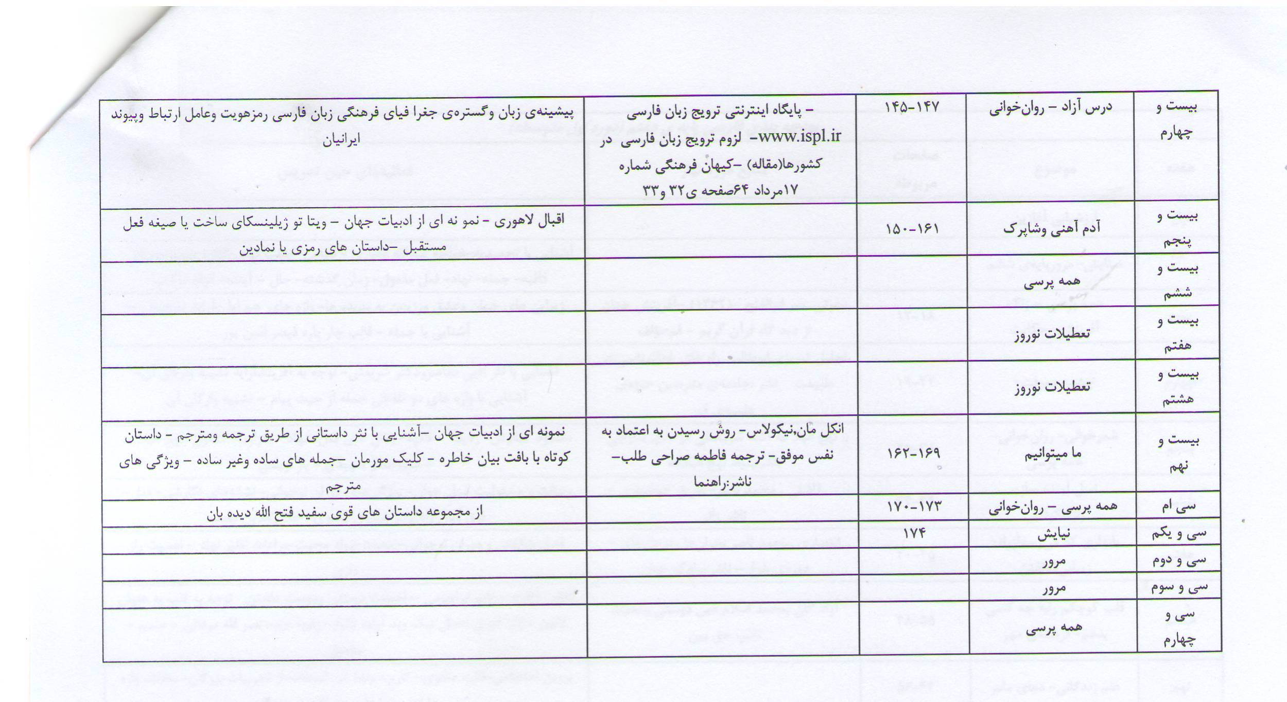 آموزشگاه های دوره اول متوسطه (بودجه بندی وطرح درس سالانه فارسی پایه های هفتم وهشتم.22386/405